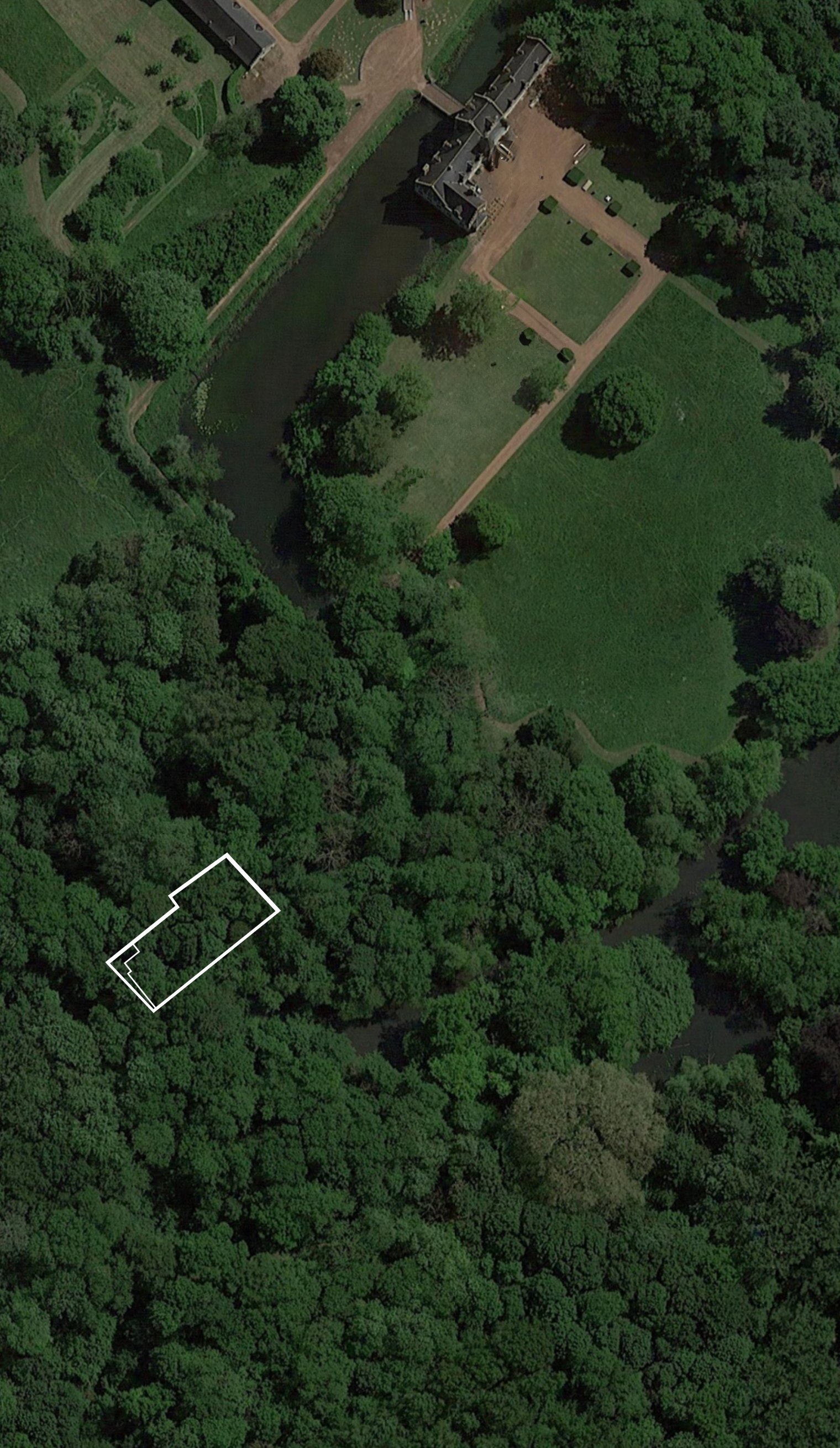 This idea became our guiding principle, not a reproduction of baroque grandeur, but a scenography rooted in landscape observation and the intimacy of looking. A constellation of trees surrounding Rubens country residence ‘Steen’ in Elewijt is translated to the Kolveniershof site. The precise distances between the naturally formed tree trunks in Elewijt are reinterpreted as an abstract forest of columns in the Kolveniershof. Nature is temporarily transformed into architecture.