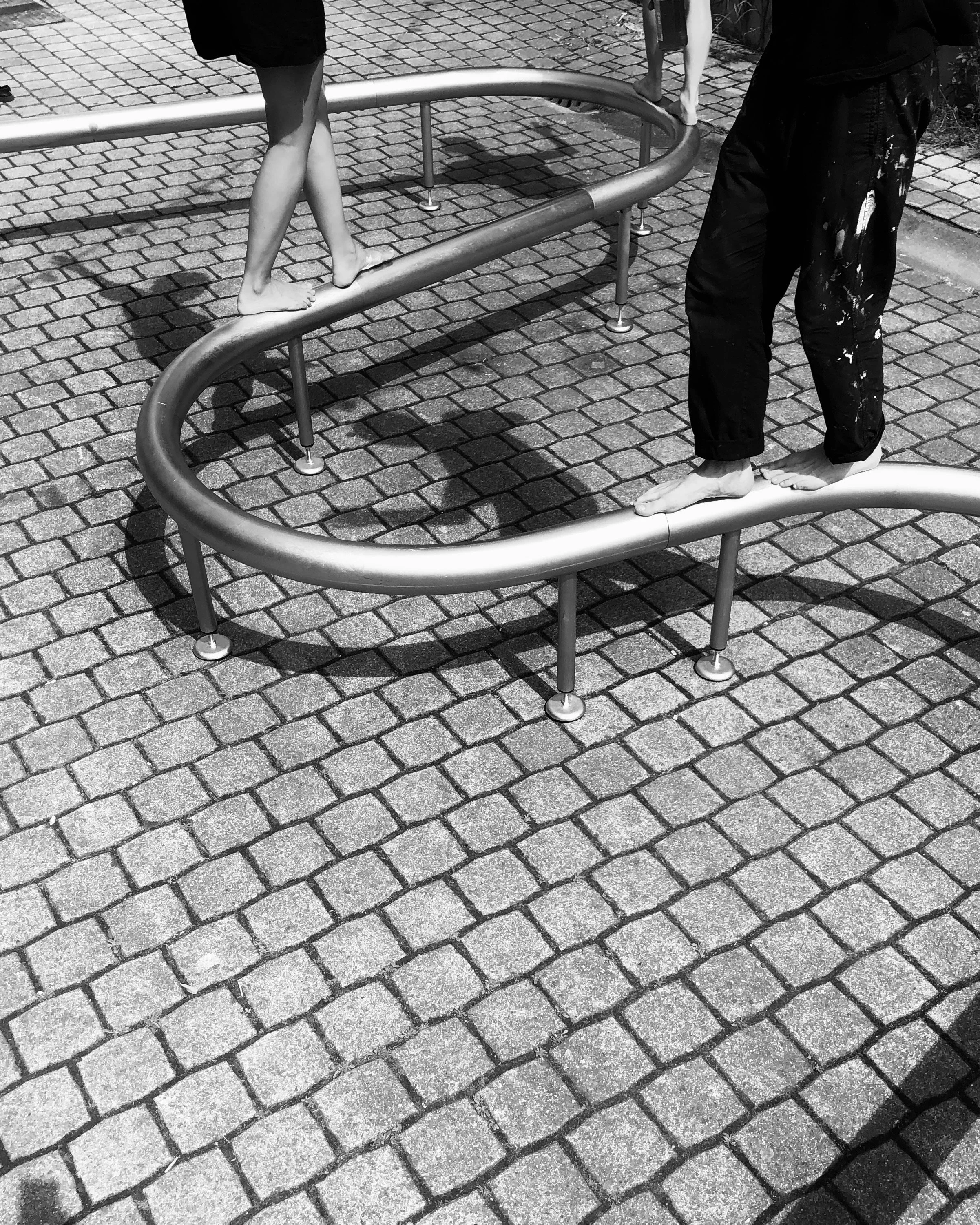 The poetic-geometric formal language initiates play, without offering literal actions. We want to tap into the inexhaustible creativity of children, but also homo ludens in general, by offering minimal, subtle spatial works of art. As designers, we want to focus on tangibly translating playful activities into design terminology within this research. In this project, our design vocabulary mainly contains terms such as folding, mirroring, copying, turning, extending, coloring, ... Which we would like to relate to verbs such as balancing, rocking, sliding, climbing, turning, ... We believe in systematic simplicity, which therefore works in a multidisciplinary manner in different contexts. Simple actions at various locations open up places in the city. These actors also work as a catalyst and connection between parents of children who we involve in the play sculptures. Due to the simplicity of construction and connections, in an ideal world the objects can easily circulate throughout the city, from event to park to school to museum to.... night club
